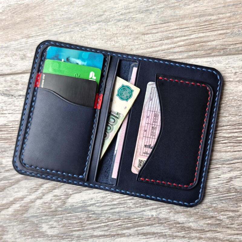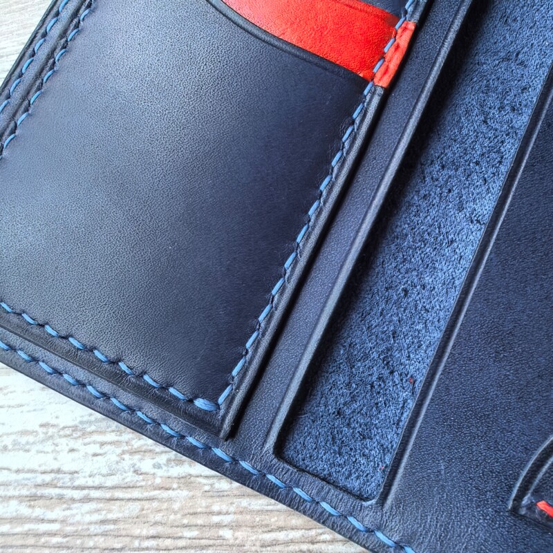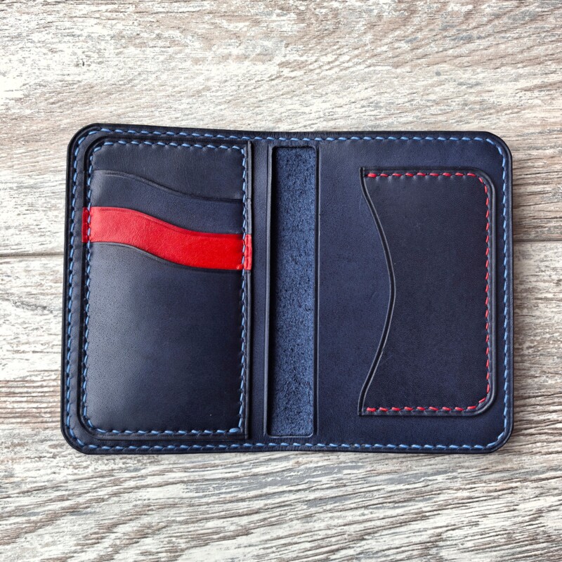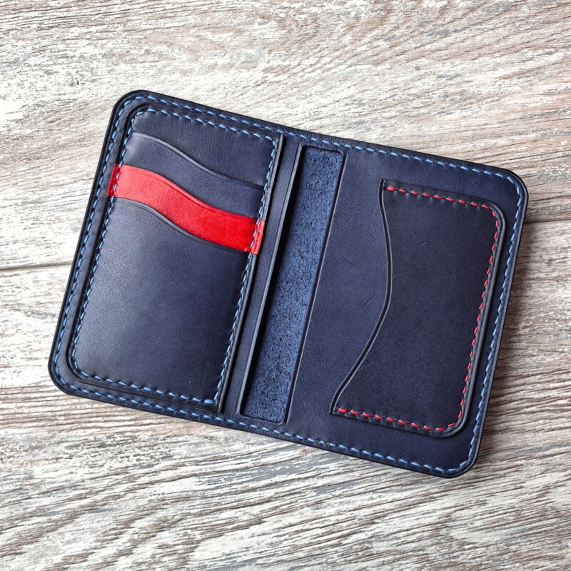 Наполняемость: два отдела под СТС и наличные, сложенные пополам, карман для водительского удостоверения и три кармана для карт.