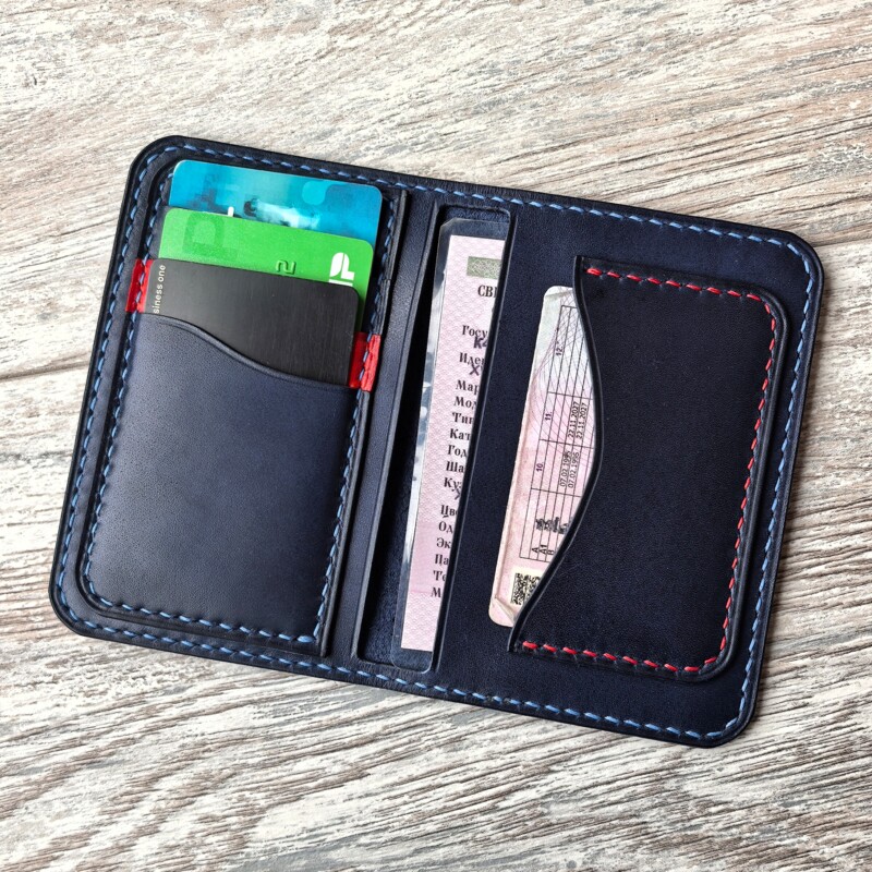 Компактная и стильная обложка под размер СТС изготовлена из высококачественной натуральной кожи , цвет синий. Благодаря небольшим размерам без труда поместится и в кармане брюк и в куртке и в сумке. ПАСПОРТ в данную обложку не помещается. Собрана и прошита исключительно в ручную, седельным швом, что гарантирует качество и долговечность изделия на долгие годы.