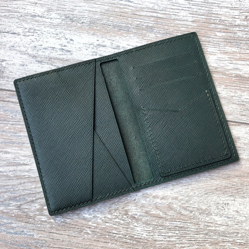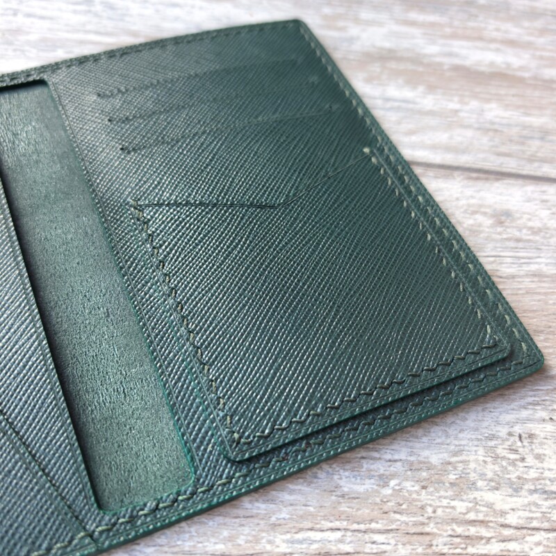 Обложка изготовлена из высококачественной натуральной кожи "Сафьяно" пр-ва Италия. цвет изумрудный. Полностью ручная работа от раскроя до прошивки. Прошита седельным швом, вощёной нитью. Выполнена биговка, обработка и покраска края изделия. Преимущество данной модели - это компактность, благодаря небольшим размерам без труда поместится и в кармане брюк и в куртке и в сумке. ПАСПОРТ в данную обложку не помещается.