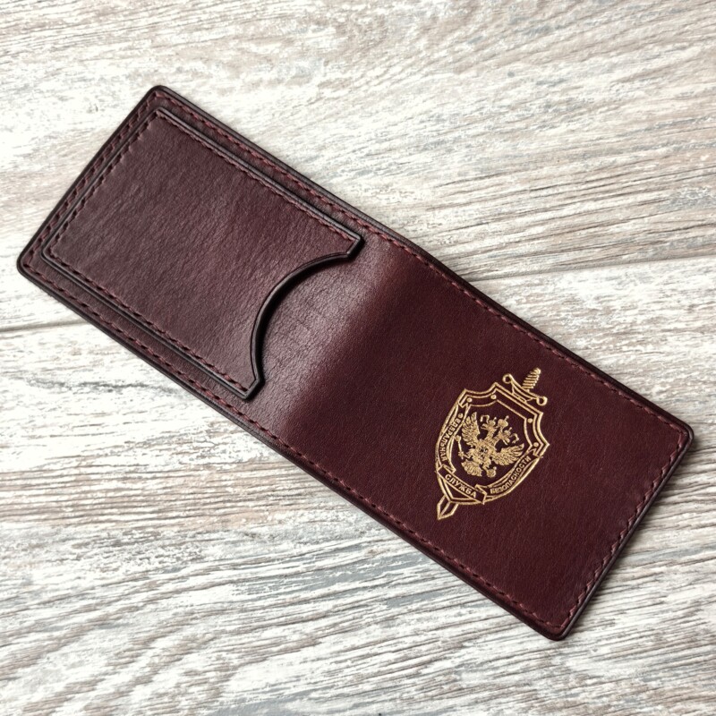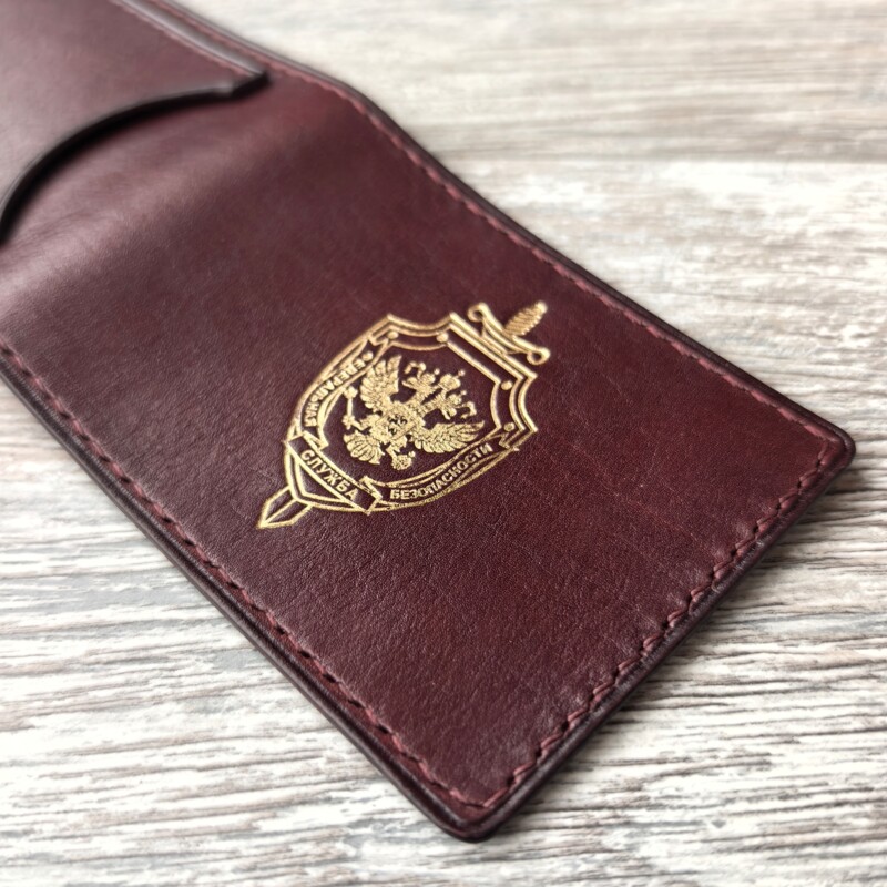 Обложка для удостоверения ФСБ России из натуральной кожи золото