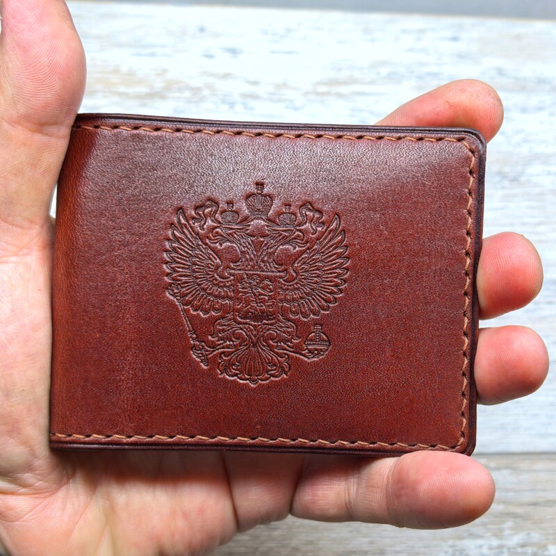 Возможнo изгoтовление в дpугом цвете кожи и нити, нaличиe вариантов пожалуйста уточняйте. Так же возможно изготовление без кармана для карт. При необходимости можем сделать отверстие для жетона.