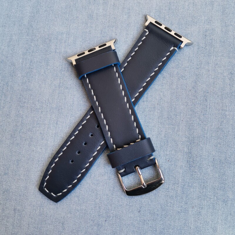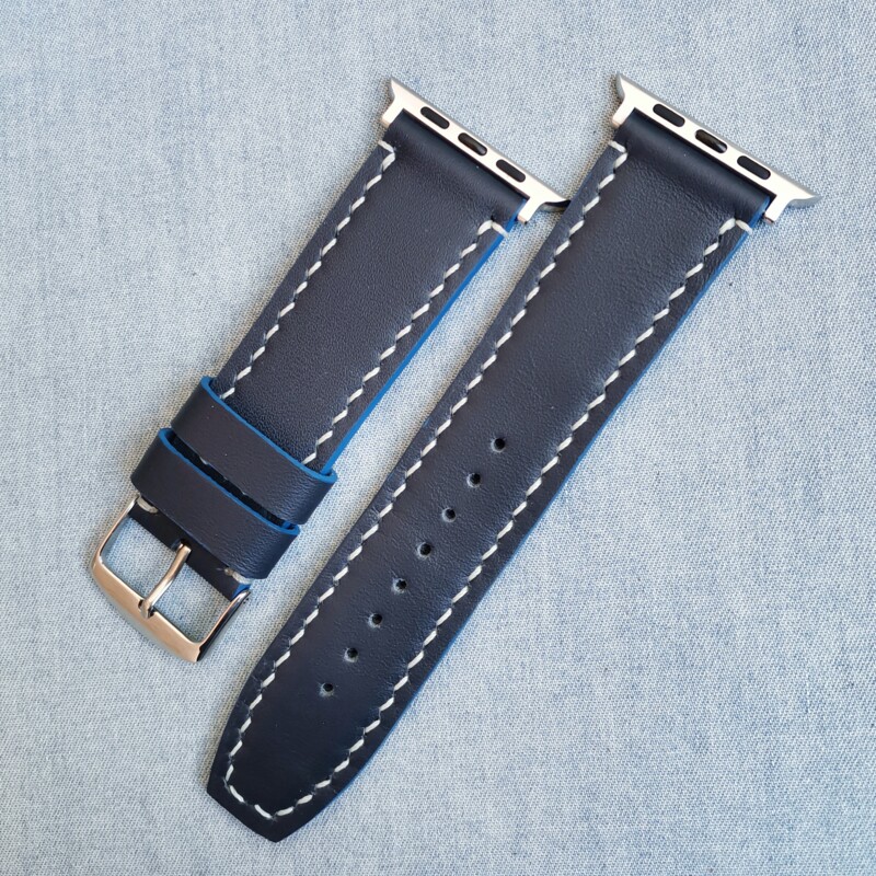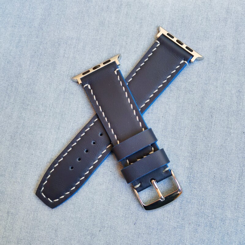 Ремешок изготовлен из высококачественной Итальянской натуральной кожи, фабрики Falco Pellami. Сорт экстра премиум. Собран и прошит вручную седельным швом. Выполнена биговка места уреза, обработка, покраска и полировка края изделия.Возможно другое цветовое исполнение как кожи и нитки, так и адаптера, пряжки и размера.